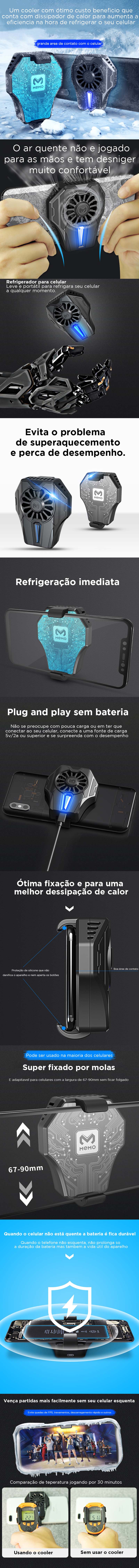 esse cooler foi desenvolvido pensando especialmente nos jogadores de PUBG Mobile e COD Mobile. Acreditamos que cada segundo conta quando você está imerso em batalhas intensas, e é por isso que oferecemos um produto de alta qualidade e confiabilidade.