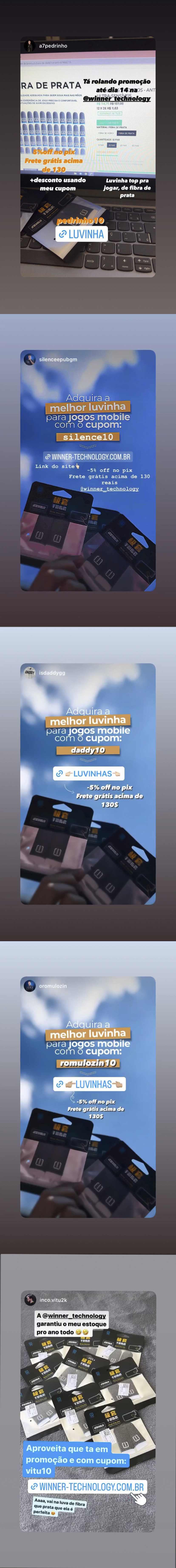 "Desde que comecei a usar as Luvas de Dedo Gamer da Winner Technology, minha performance nos jogos mobile melhorou significativamente. Elas são confortáveis, leves e me dão o controle que eu preciso para vencer." - João, gamer entusiasta